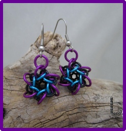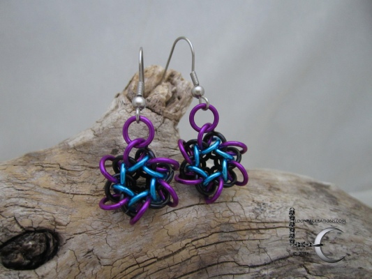 Pinwheel units in black, violet and turquoise anodized aluminum