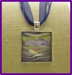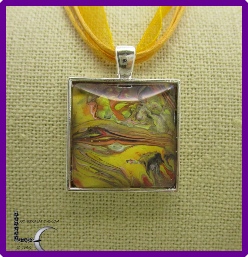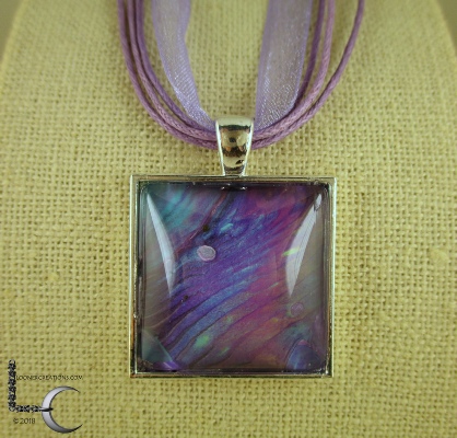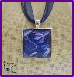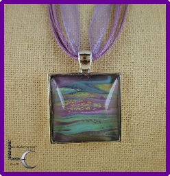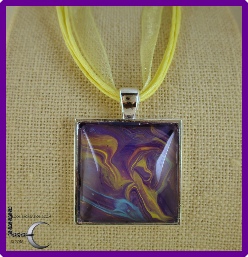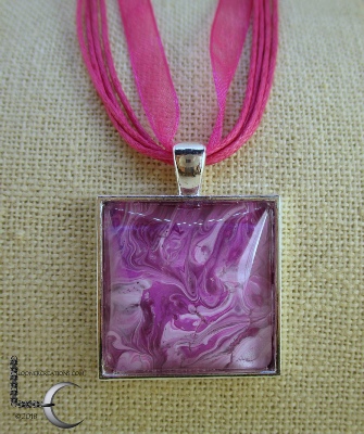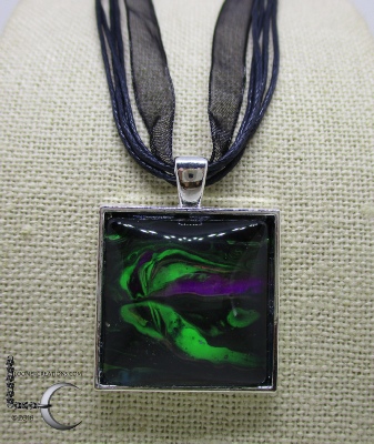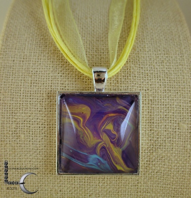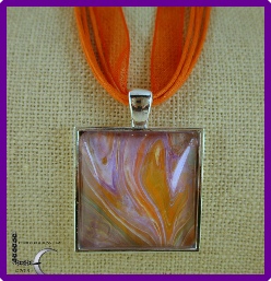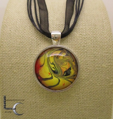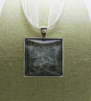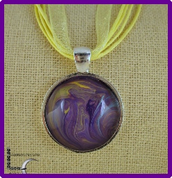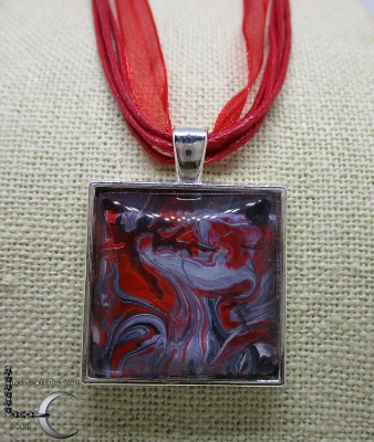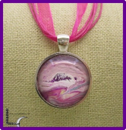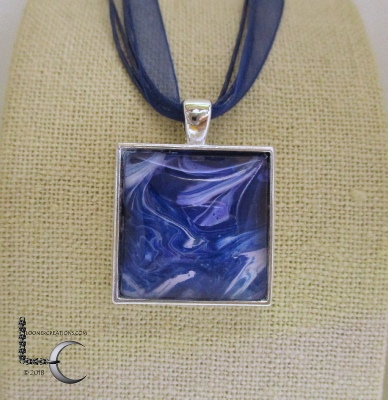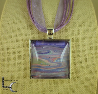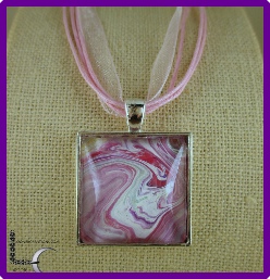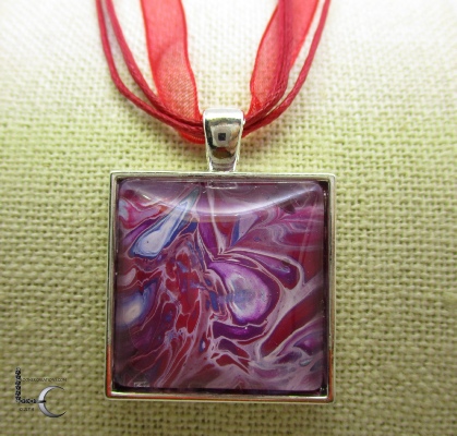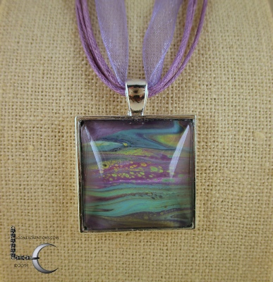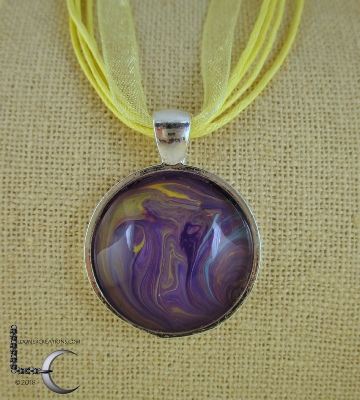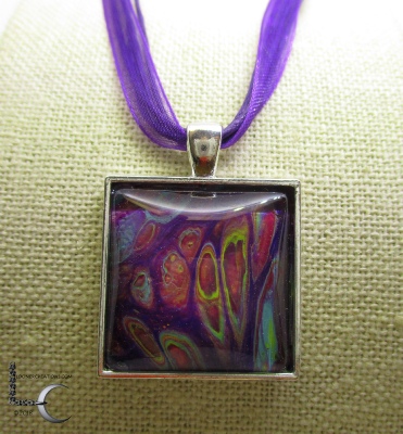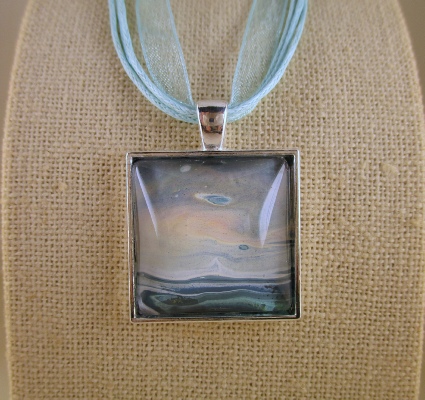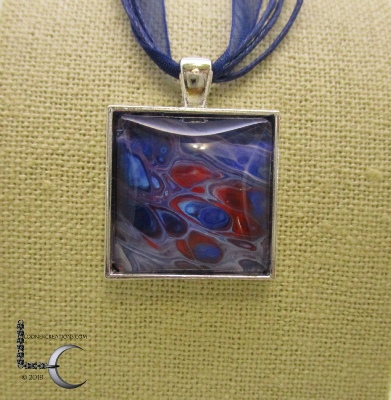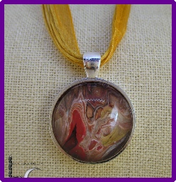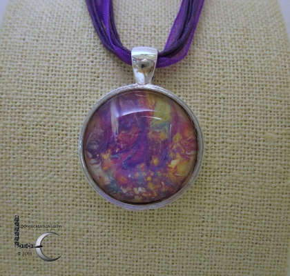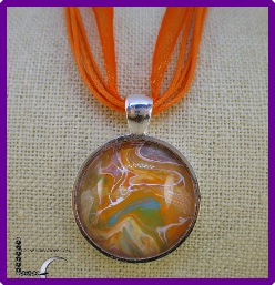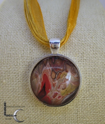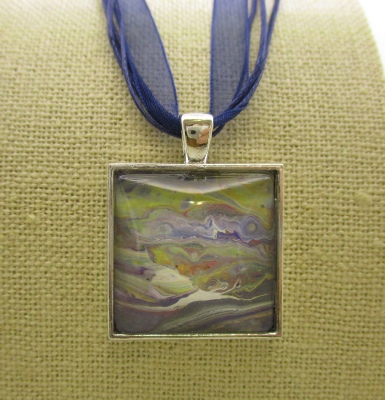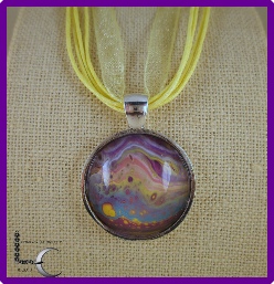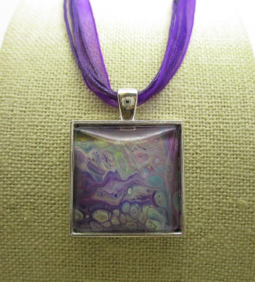 One of a kind Pour Painting necklace with ribbon & cord neck chain